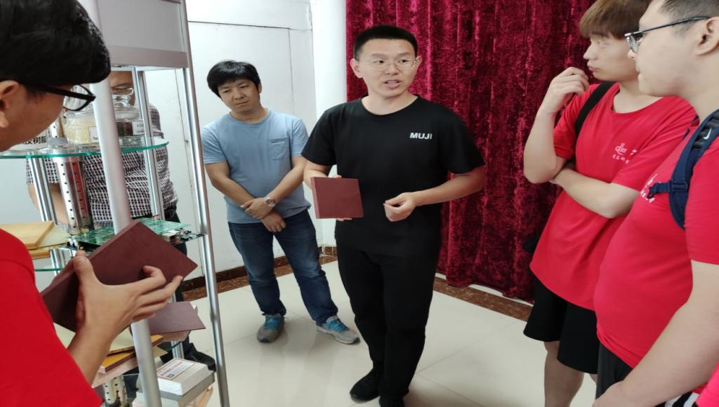 在圣泉集团,调研团首先参观了酚醛树脂生产控制中心。讲解人员带领调研团参观了各类酚醛树脂、轻芯钢材料和衍生品,详细讲解了各个产品的生产和发展历程。圣泉集团是“神舟”系列飞船返回舱保温原材料制造商和中国耐火材料专用酚醛树脂标准起草单位,产品出口50多个国家和地区,成为全球主要的酚醛树脂供应商。由酚醛树脂与增强纤维经特殊工艺生产出的圣泉轻芯钢,具有轻质高强、隔音降噪、阻燃保温、耐腐耐候等性能,成功应用于以“复兴号”高铁为代表的轨道交通领域,正谋求在新能源汽车、飞机、军工等领域的应用。在参观过程中,调研团成员亲身体验了轻芯钢材料,质量之轻强度之大令我们非常震惊,真想不到不起眼的小颗粒能有如此大的功效。圣泉集团的酚醛树脂年产能40万吨,在耐火材料、摩擦材料、保温材料、涂覆磨具、绝缘材料、轮胎橡胶、航空航天、军工等领域市场广阔。