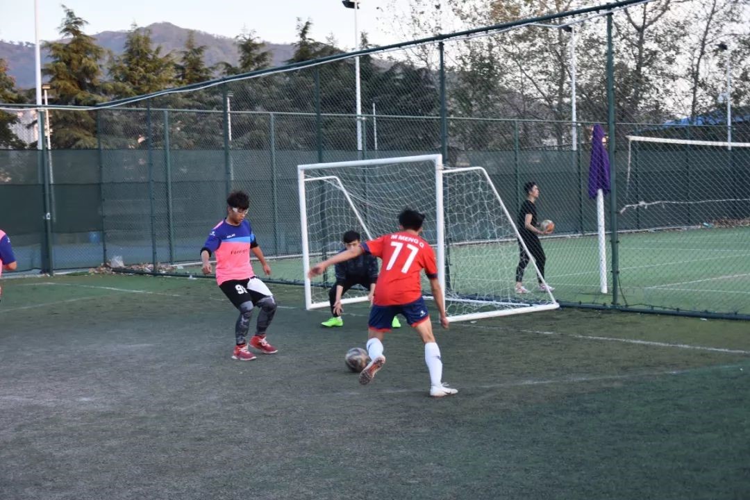 足球队迎来了第二场“育新杯”比赛,对战外国语学院足球队。首发球员为:20号董杰,1号董明暄,77号马孟岐,4号孙瑞威,33号玉苏普。哨声响起,上半场比赛正式开始。