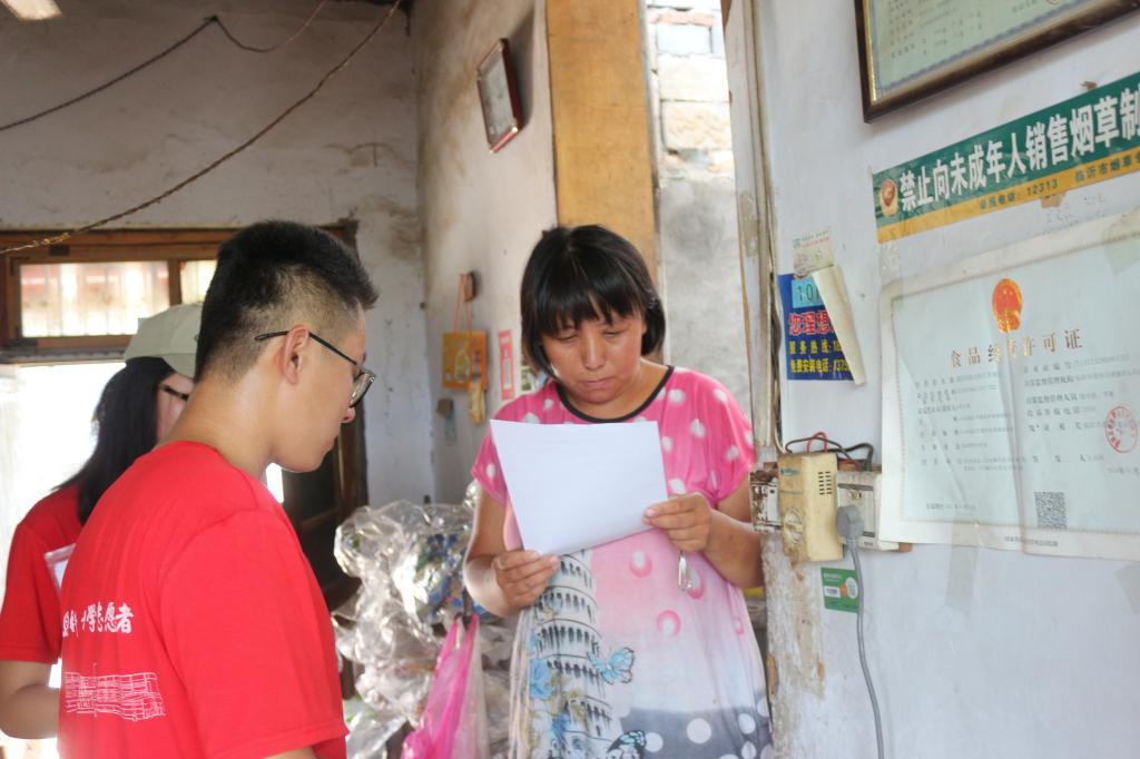 7月28日,青岛科技大学赴蒙阴县桃墟镇“蒲公英”调研团在指导老师崔瑜涵的带领下,以深入民生为主旨,向当地村民发放有关民情的调查问卷,为更深入了解当地民生,为更好实现精准帮扶提供直观的数据。
