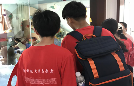 7月22日下午,吃完午饭后,青岛科技大学赴蓝天之家儿童福利院服务团在福利院工作人员的带领下来到了位于福利院大楼二楼的对外开放活动室。青岛蓝天之家福利院主要助养社会上遗弃的婴儿和残障儿童,据院长介绍,福利院收养的孩子98%是残障儿童。虽然儿童福利院能够为很多儿童提供基本的生活保障支持。