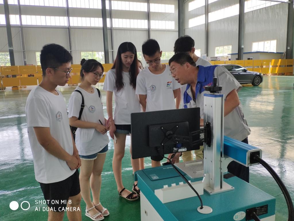 调研团来到山东海大机器人科技有限公司参观学习,队员们受到负责人的热情接待并跟随他参观了公司的机器人工作车间。负责人向队员们解释说,现在的工业机器人越来越智能化,凡是需要重体力和污染重的工作都渐渐由机器人代替,工人只需在开动前按动一下启动开关即可,但这并不意味着工人会面临下岗失业的危机,机器人仍存在一些目前无法克服的问题,最终还是要依靠人来解决。