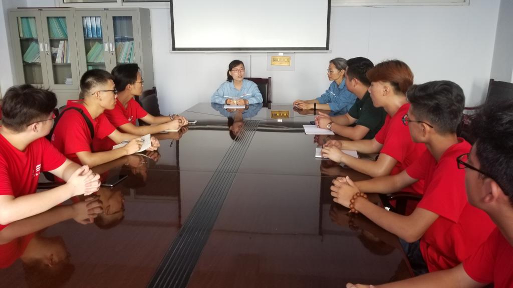 在创新工作室中,刘海波首先代表学院对于公司的热情接待表示了感谢,介绍了本次“三下乡”社会实践团队。沟通之后,公司负责人员对此次调研团的到来表示欢迎,并请工程师徐翠翠为团队讲解创新工作室对硫磺回收工艺改进的历程。在工作室内,经过徐翠翠的讲解,队员们充分了解到,创新工作室成功研发出新型催化剂,使硫磺回收率从原来的97%提升到了99.95%以上,硫磺回收工艺的能耗大大降低,此项先进技术也在世界中居于领先地位。调研团成员表示通过此次讲解学到很多关于硫磺回收方面“新旧动能转换”的知识,同时对于创新实验室员工的创新精神和艰苦奋斗的精神感到由衷的敬佩。