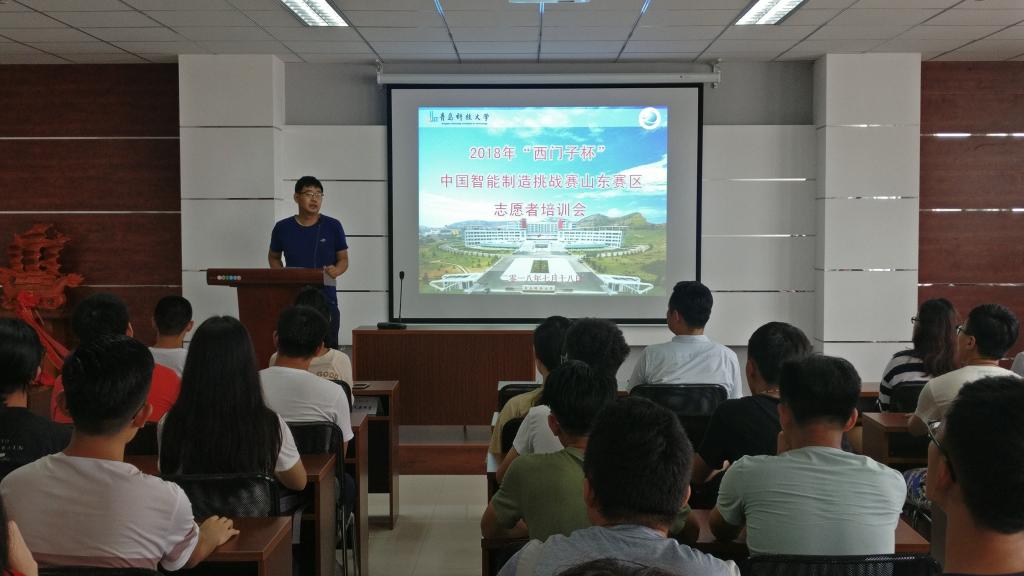 在崂山校区D1实验楼410会议室举行教育部2018年第12届“西门子杯”中国智能制造挑战赛志愿者培训会,出席本次培训大会的有自动化与电工学院副院长陈为、分团委老师田永康、各研究生和本科生志愿者50余人,会议由免费成人漫画