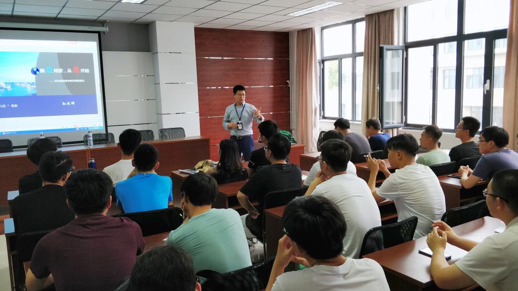 在学院学术报告厅举办2019届毕业生首场招聘宣讲会。会议由青岛展诚科技有限公司人力资源部总监孙延辉现场讲解就业形势以及招聘信息。
