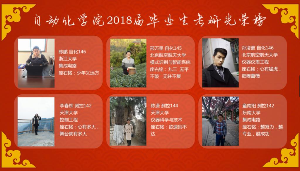 2018届毕业生考研工作取得可喜成绩。今年学院共有毕业生530名,158人被弗吉尼亚大学、北京航空航天大学、电子科技大学、北京科技大学、山东大学等国内外知名高校录取,考研录取率达29.8%。