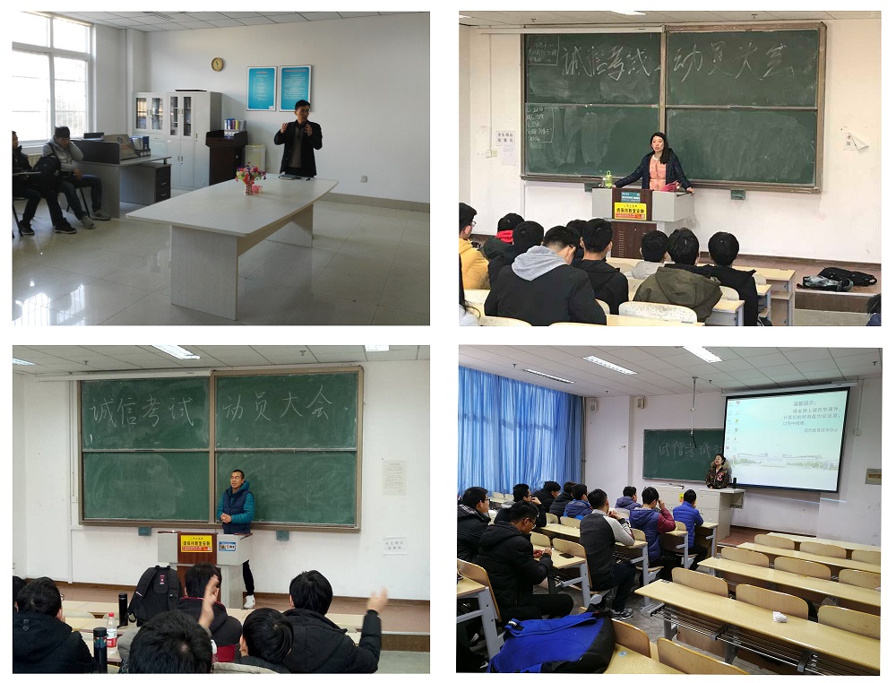 测控151、152班两班级以模拟考场的形式模拟考试现场,结合以往出现的考试问题及处理办法告诫同学们要严肃对待考试,诚信考试;自动化152班则通过宣读《学生手册》青岛科技大学学生行为规范细则第六条以及青岛科技大学学生纪律处分管理规定的相关条款,强调违规舞弊行为的后果和严重性;自动化157班对大学生活中各种不诚信的现象及后果进行讨论,以此警示同学们诚信做人的重要性。各班级成立学习互助小组进行互帮互助,并将根据期末考试对成效明显的学习小组予以表彰。