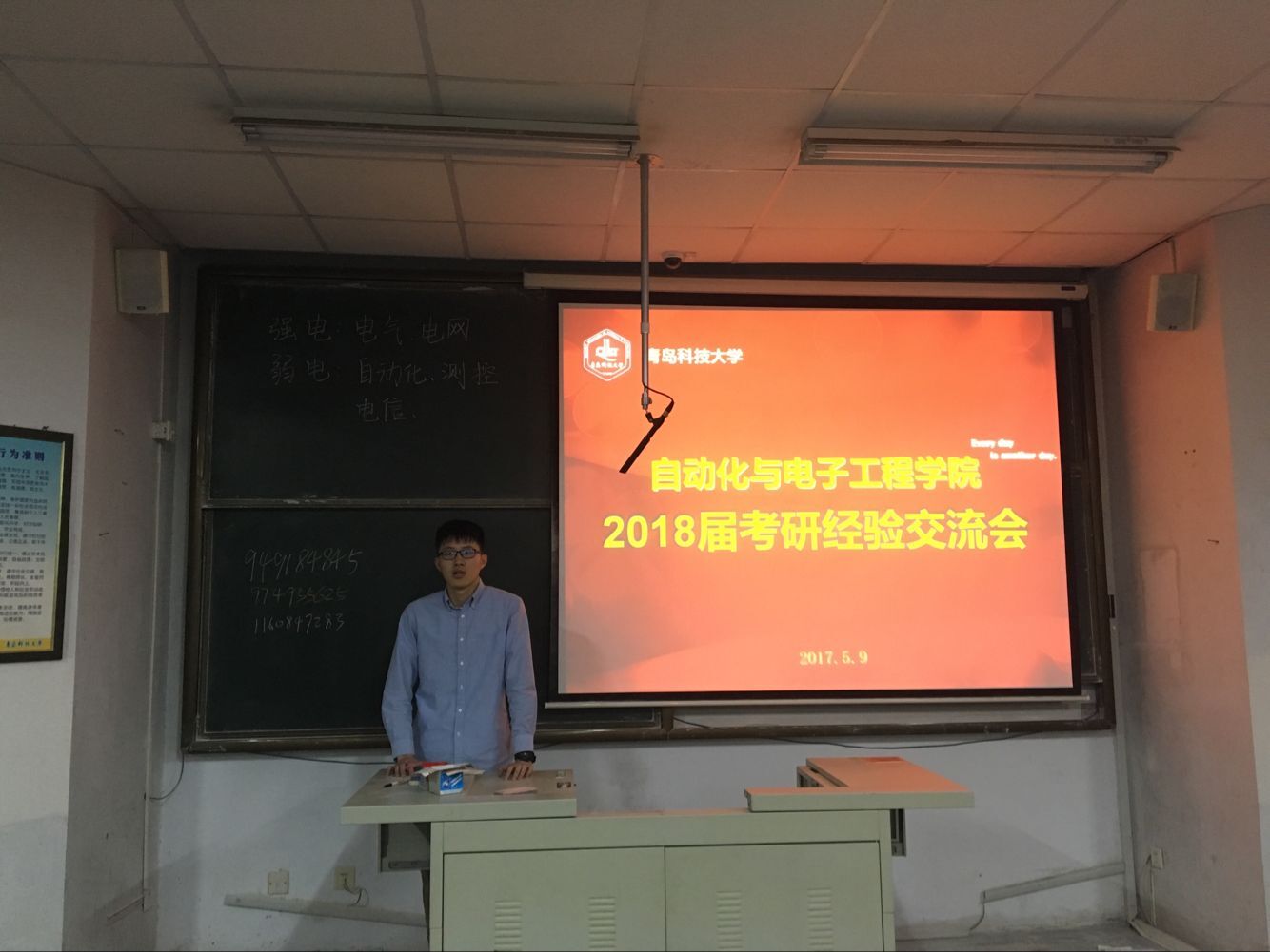 交流会前,江星彤根据去年我院考研情况深入分析了当下的考研形势,强调择校与选择专业的重要性,要在学习中累积经验,掌握技巧。他鼓励在座同学们应该发扬自化学子吃苦耐劳的精神,努力拼搏,奋斗不止。