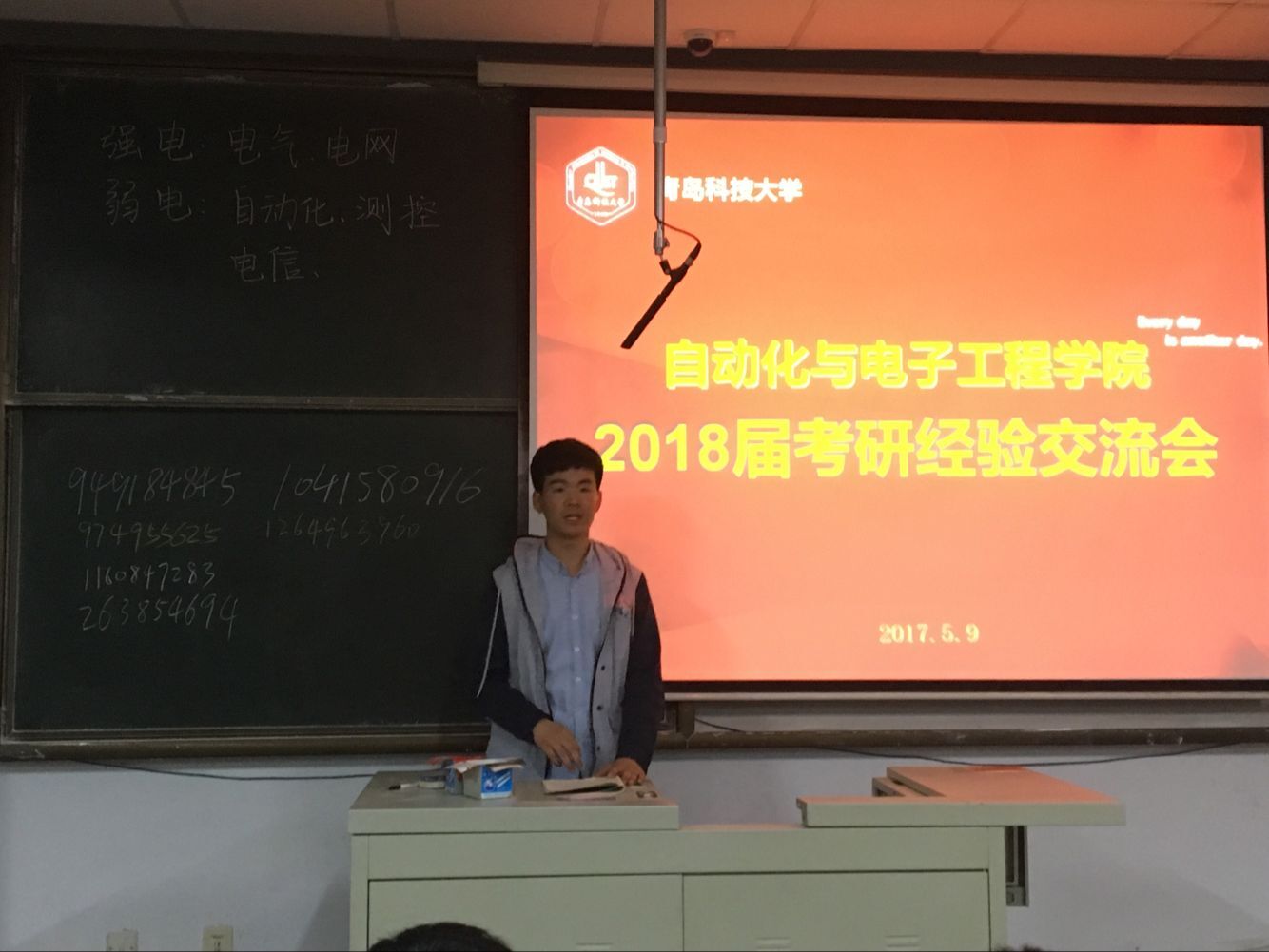 2018届考研经验交流会在1教301举行。交流会诚邀20余位考入名校的学长学姐分享考研经历和学习经验,200余名有考研意向的同学参加交流会。会议由院学生会副秘书长刘朝慧主持。