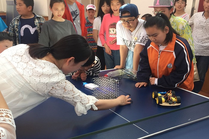 特色的电子科技产品,并且演示与讲解双管齐下。其中包括“红外线避障车”、“电子飞机”、“灯立方”、“点滴计时器”等,均是由免费成人漫画