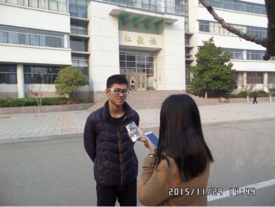 本次活动由测控154班团支书施逸非组织策划,张建华同学做视频后期剪辑制作。活动范围在南苑操场、弘毅广场等不同地点,采访人对同学就“我们是共产主义接班人”这个主题进行调查问答。此次调查采访问题涵盖当今社会对共青团员认知的多个方面,形如“第一次系上红领巾的感受”“作为共产主义接班人对自己的要求及对未来的展望”等等。尽管采访中寒风阵阵,但是采访者与被采访者的同学都很积极热情,提问简洁明了,被回答时更是坚定认真。当被谈及团组织对自己的影响时,被采访人言真意切,从生活和学习等多个方面进行了阐述,从他们的眼神和语气中可以看出他们似乎在宣誓争做合格的共产主义接班人,自愿为共产主义事业做贡献。