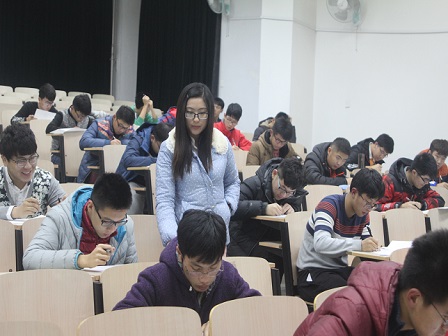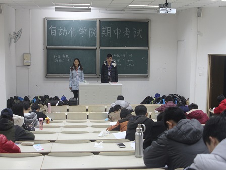 考前,2015级辅导员潘婷多次强调考风考纪,向新生强调了考试纪律和期中考试的意义,积极引导新生按照既定目标踏实学习、规划学业。巡考、监考小组尽职尽责,严抓考场纪律。考前十五分钟,同学们陆续来到考场,进入严肃备考状态。随后,同学们严格按照考试要求,奋笔疾书,积极遵守考场纪律,进行认真、规范答题。直至考试结束,未出现一例违反考风考纪的现象,体现了当代大学生对自身素质的严格要求。