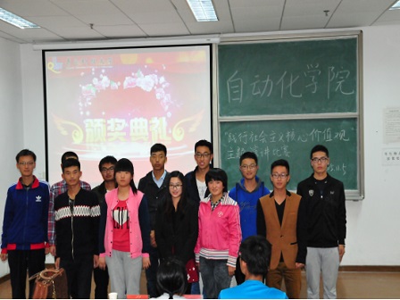 电气专业在明德楼504教室举办了以“培育和践行社会主义核心价值观,争做自化好青年”为主题的演讲比赛。出席本次活动的指导老师是张艺敏,评委由张老师及曹培芳、李研同学担任,共11名同学参与了此次角逐。