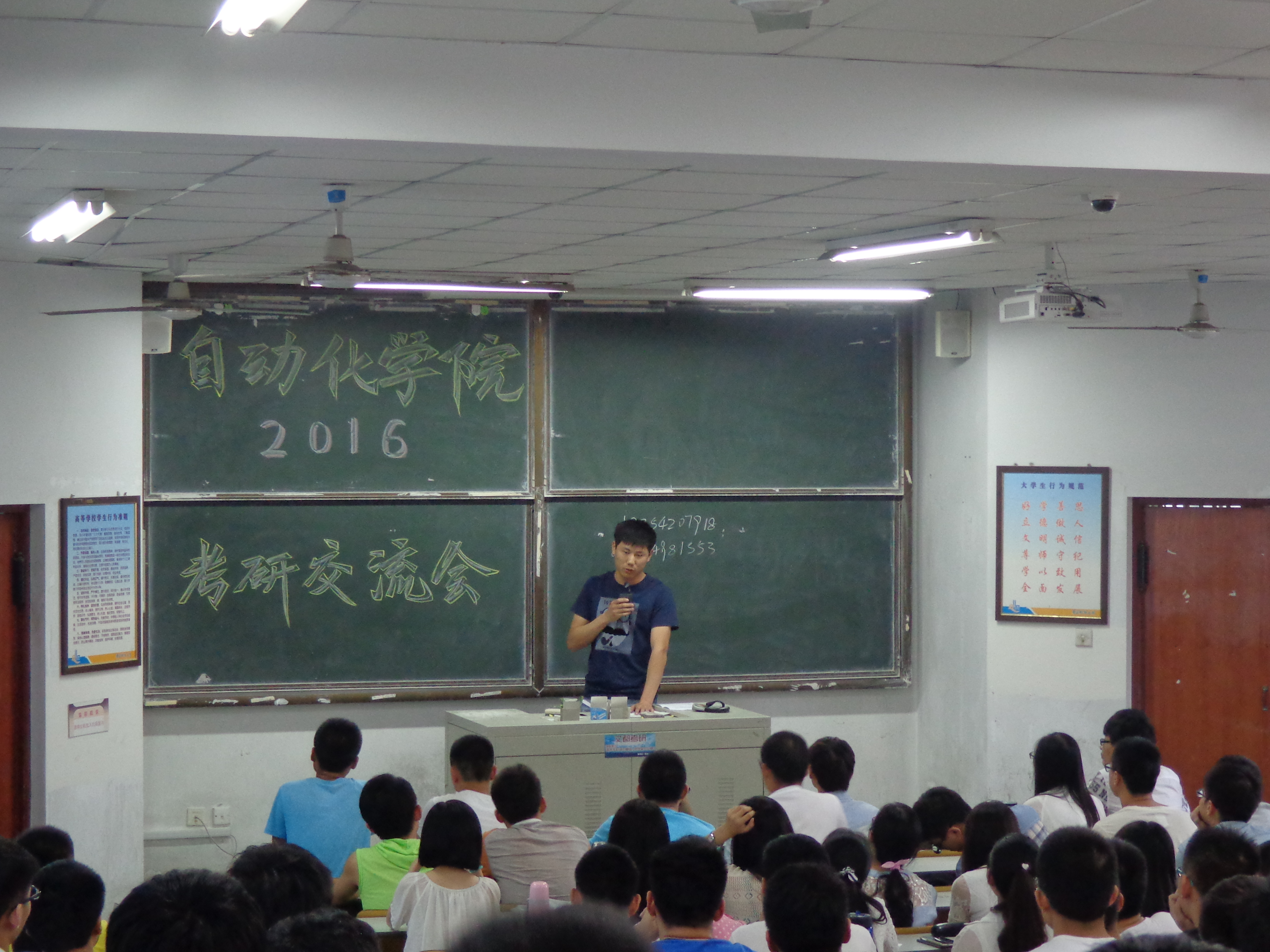 2015届毕业生考研交流会在四方校区第一教学楼201教室举行。2015届优秀毕业生代表程盟盟、刘博文、郭忠同、胡晨阳、田宝中参加了此次交流会,与台下同学进行交流研讨。