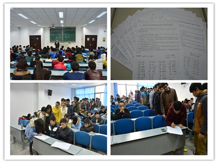 于明德422教室组织13级500多名学生分四个批次进行了“诚信考试承诺书签订仪式”,四场签订仪式均由免费成人漫画