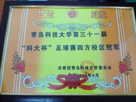 足球队与研究生队决赛在四方校区足球场成功举行。开场后,我院队员便频频上演了精彩过人的足球秀,灵活地在众多队员中带球穿梭,创造了多次射门良机,但总是遗憾的与进球失之交臂。虽多次进攻未果,但我院队员并未气馁,两队艰苦地踢完了上半场。下半场刚开始我院队员一次断球反击控到了球,又紧跟一个绝美的落叶球,突破了对方防线,为我队夺得一球。此时,对方球队也不甘示弱,步步紧逼,也拿到了一球。比赛这时已接近尾声,双方比赛分数持平,尽管此时队员们的体力已快要消耗殆尽,但并未放弃,终于我队队员“大佬”在比赛将要结束时,再次突破了对方防线,漂亮的又进一球,使我院夺得了青岛科技大学“科大杯”足球赛的冠军。至此,青岛科技大学“科大杯”足球赛圆满结束。