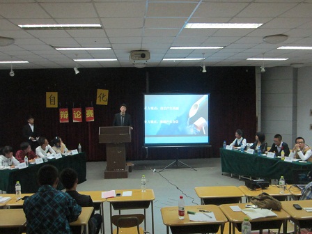 进入决赛的两个队伍分别是一路过关斩将的自动化133班和辩论团。比赛开始后,场上双方辩手你来我往,唇枪舌战,围绕着辩题“自信产生美丽还是美丽产生自信”展开了激烈的辩论。比赛分为四个阶段,分别是陈辞阶段,攻辩阶段,自由辩论阶段,总结陈辞阶段。其中最为精彩的是自由辩论阶段,选手们不失风度,面带微笑,侃侃而谈。良好的风范,出色的口才,敏捷的思维令场下观众为之折服,掌声不断。最终,自动化133班代表队凭借着出色的反应能力和严谨的逻辑夺得决赛冠军,来自辩论团的孙玉晗同学获得最佳辩手的称号。