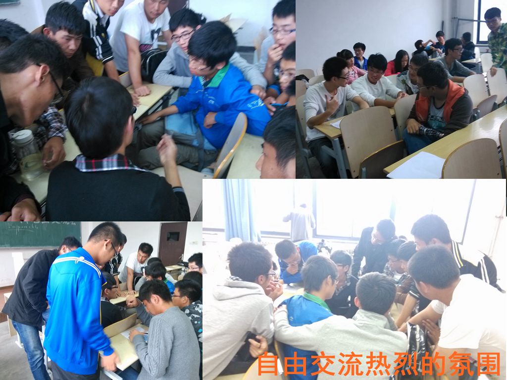 自由交流中,13级学生将自己生活与学习中的困惑反馈给学长学姐们,学长学姐们细心为他们进行解析。
