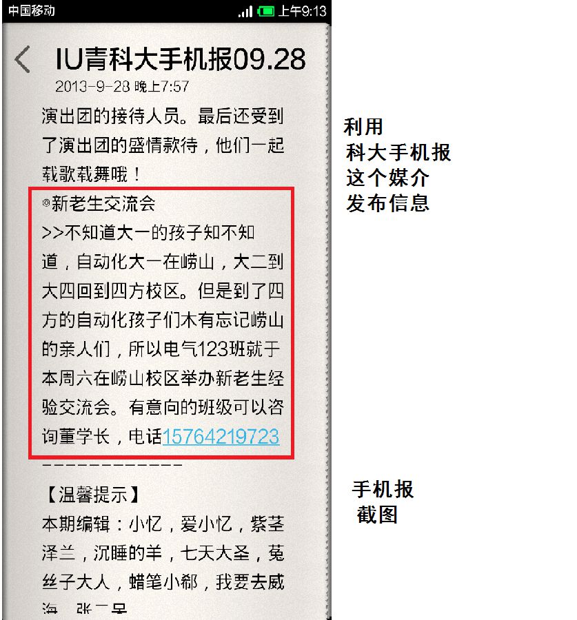 自12级开始,大一新生在崂山校区学习,生活。转眼已是2013年,13级的自动化学子又迈进了崂山校区,难免会对新的大学学习,生活环境难以适应。12级学长应树立责任意识,将自己在崂山校区的经验传授给13级的学弟学妹们。