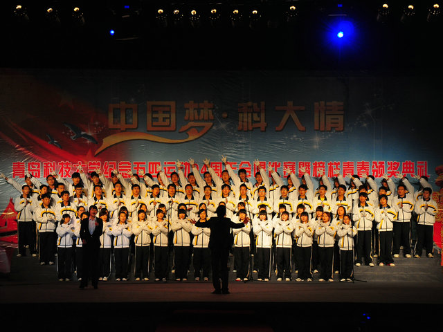 5月3日,“中国梦·科大情” 青岛科技大学纪念五四运动94周年合唱比赛暨榜样青春颁奖典礼在崂山校区体育场举行,自化学子以一曲《我的未来不是梦》得到了评委的一致肯定,勇夺合唱比赛一等奖,学院刘凯同学斩获最佳指挥奖。