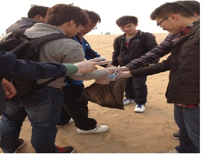 中法班开展了以“喜迎十八大”为主题的社会实践活动。大家以“举国喜迎十八大,爱护环境你我他”为口号,来到石老人海水浴场,进行捡垃圾活动。