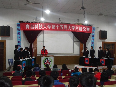 比赛开始先由主持人介绍到场嘉宾有传播与动漫学院的孟美菊老师及吕新福老师,还有各院代表。然后介绍双方四位辩手,正方双方为一辩赵迪,二辩卢宇政,三辩黄雅茵,四辩薛均翰。反方为一辩徐俊强,二辩宋其斐,三辩刘锦文,四辩曹洪美。都显示出必胜的决心。然后进2012年11月13日周二晚6:30,由校学习部主办的青岛科技大学第十五届大学生辩论赛第入陈词阶段,双方一辩就辩题的定义展开,引出各自主题,为后边做铺垫。正方从时间空间,横向纵向对辩题深入解剖,反方也对辩题深入理解。最为精彩的是攻辩阶段,双方你来我往,唇枪舌战,比赛进入白热化。正方辩手以敏捷的思路,犀利的言辞巧妙躲过对方的陷阱,赢得场下观众阵阵掌声。进入总结阶段,双方四辩以全面精辟的言辞,再次深化各自的主题,针对辩题做最后总结。最后由吕新福老师进行点评,经讨论嘉宾讨论决定免费成人漫画