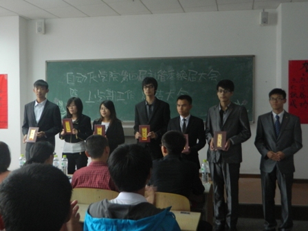 分团委张敏老师。首先,第三届社管委主席冯君波对上一年的工作进行总结,接着由各位老师为上一届“社团工作先进个人”的获奖者颁发荣誉证书,然后赵玉言老师为社管委主席团成员颁发聘书,然后第四届社管委主席王超讲话并为各个会长代表颁发聘书。最后王伟老师讲话,对社管委的每个协会都提出了办精品活动,品牌活动的要求,并且提醒同学们在参加活动的同时不能忽略了学习。