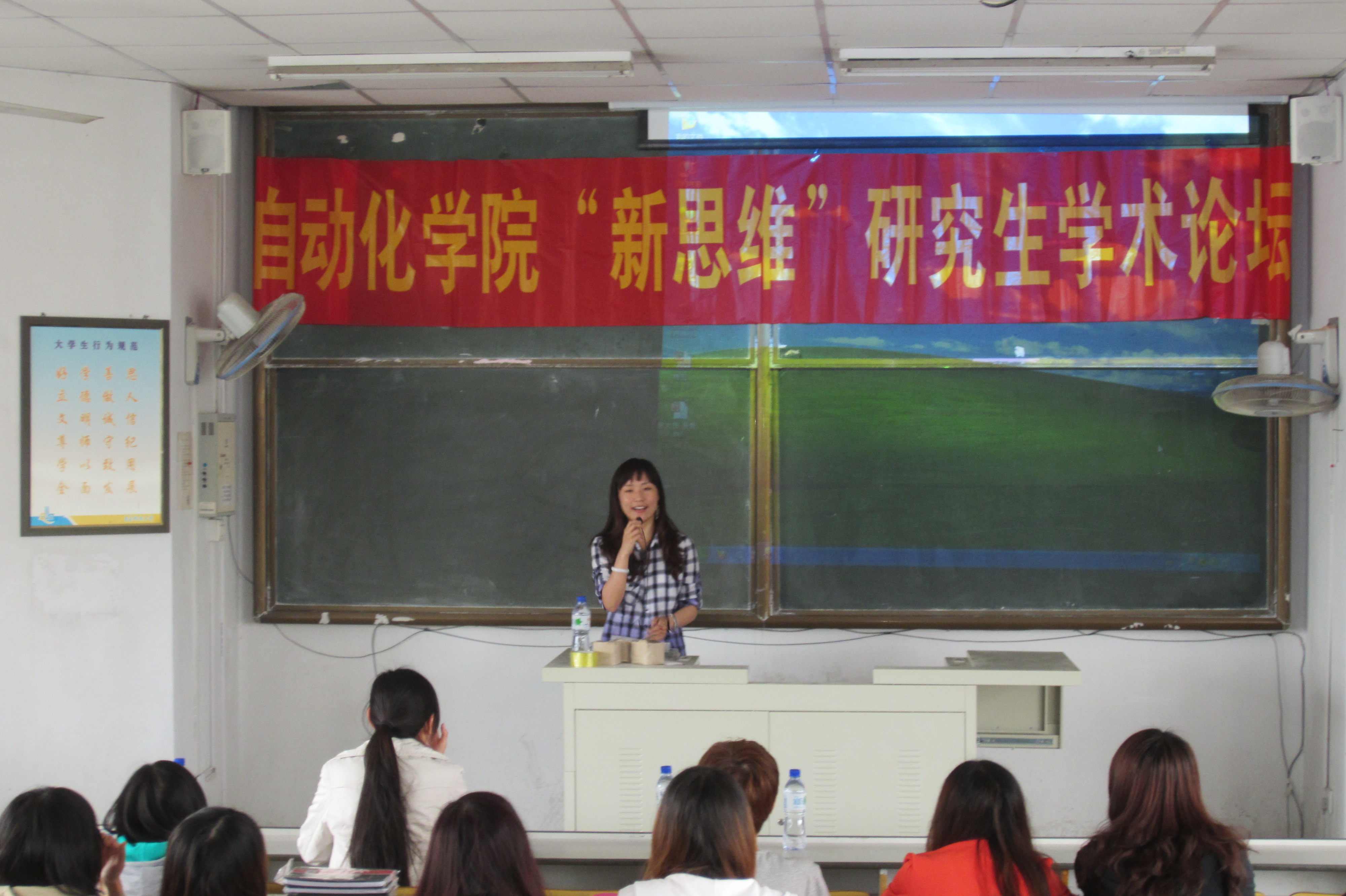在四方校区1教603举办了“新思维”研究生学术论坛专题报告会。本次报告由2010级控制理论与控制工程专业研究生蔡大伟及2009级研究生魏蕊作为主讲人,全院100余名研究生同学听取了报告。