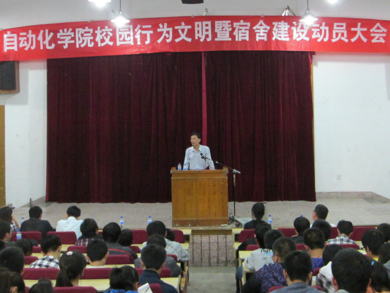 2011年校园行为文明促进月活动实施方案》;接下来学生代表张锐同学宣读了《大学生校园行为文明自律倡议书》,倡议全体同学严于律己,争做文明当代大学生,引起了现场同学们的共鸣;肖强老师在讲话中指出了当前宿舍建设中存在的问题,并对全体学生干部提出了具体要求和殷切希望。