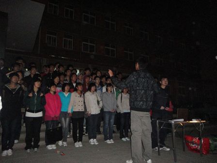 学生会文艺部组织同学们进行紧张而有序的训练。