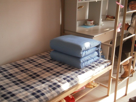 下午1点30,生活部干事在副部们的带领下对大一大二各个宿舍进行了认真的检查,地面要保持清洁,床铺整齐,桌子上物品摆放整齐,只有符合以上三点的宿舍,才能评选优秀宿舍。负责检查女生宿舍的同学首先从乙楼大二宿舍开始,大二宿舍虽然八人一间,空间很小,但乙南114宿舍的卫生和床铺在所有宿舍中最好。然后是甲楼四楼的大一宿舍,所有大一宿舍地面比较干净,存在的问题是被子叠的不符合军被的要求。部长认真看了检查记录,从中选出甲南404,407,410三个宿舍,对他们进行表扬,这三个宿舍将有机会参与优秀宿舍的评比。