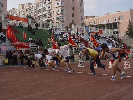 八点整,学校各院的运动员入场,运动员代表宣誓和裁判员代表宣誓之后,运动会正式开始。九点,比赛正式开始,各位运动员都在赛场上顽强拼搏,尽自己最大的努力为我院争光;其中,院长王培山参加了男子六十米比赛和男子十五米掷准项目,比赛开始前,院长积极做好热身运动,比赛中,拼尽全力,并取得较好成绩,为我们树立了榜样。他在赛场上,虽然是霸气十足,但是在赛场下,却是和蔼可亲。他积极地和老师交流,鼓励各位老师积极锻炼身体。我院的其他老师也在比赛中也表现出色,特别是赵彤老师和宋滨老师分获男子乙组铅球和女子老年组铅球的冠军。