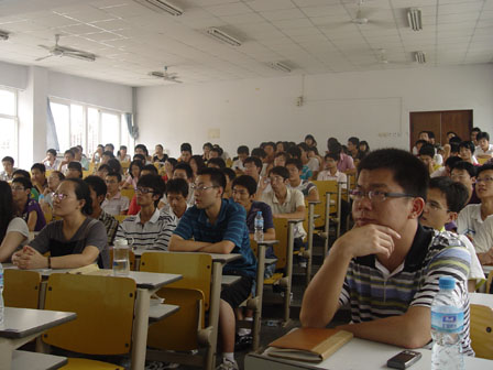 下午两点,101室座无虚席,精神奕奕的唐老师走上讲台,开始了此次科学研究艺术的讲座。在介绍专业知识前,唐老师给大家做了详细的自我介绍,讲述了自己一步步从刻苦严谨的普通学生,到海大的讲师、副教授、教授以及现在的博导地位,并且,我们也了解到了唐老师这些年的硕果累累,桃李天下,激励了在场的学弟学妹向唐老师的成就看齐。接下来,唐老师就多年的科学研究切身体会、论文撰写的重要因素及要点、非线性系统的最优控制方法研究的实际经验方法三方面为同学们深入浅出的阐述了学术研究的各方面的问题,博得了现场听众的阵阵掌声。在同学们专注认真的听讲中,唐老师最后结束了此次精彩的讲座。