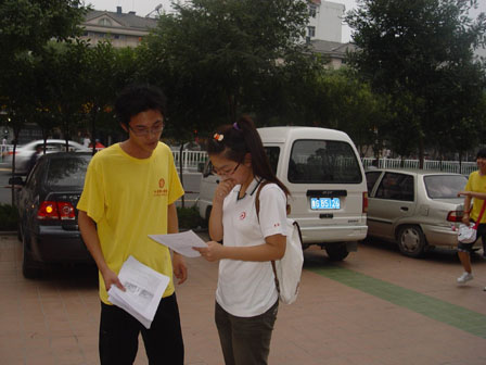 赴潍坊社会实践服务调研团的成员们经过短暂的休息整理,来到潍坊市人民广场发放这次活动的宣传材料。