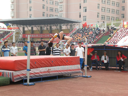 领导致开幕词,裁判员代表宣誓,运动员代表宣誓。九点整,校运动会比赛拉开帷幕。在上午的比赛中,我院同学戴超荣获男子组400米亚军,我院在男子组铅球、女子组调高、女子组1500米比赛中也占据一席之地。同时,我院的啦啦队表演也让人称喝,啦啦队队员们一袭白衬衣,配上黑色短裙,风姿绰约,舞蹈优雅,尽情地张扬青春的魅力。在下午的比赛中,我院同学再接再厉,在男子组跳高比赛中,我院同学戴超势压群雄,一举夺得冠军。