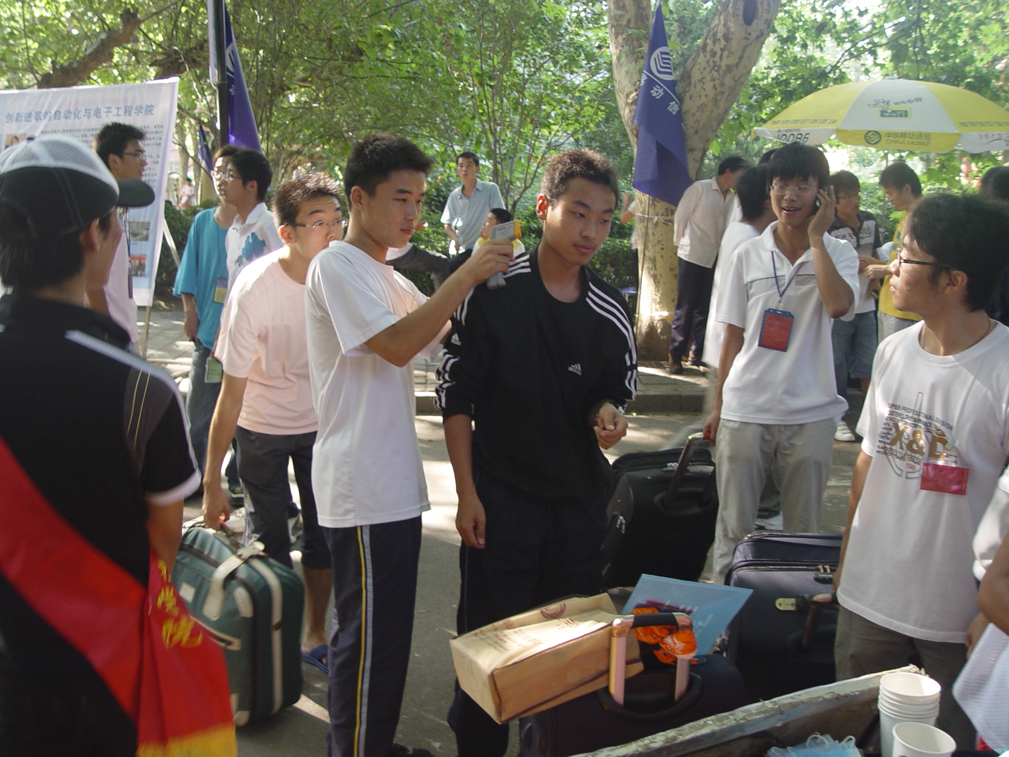 9月3日,党支部召开会议,做好迎接新生、志愿服务的各项准备工作,就集合地点、服务事宜、注意问题、事后总结等进行了讨论。9月5日早上六点,党支部成员来到迎新现场,首先协助学生会人员进行场地布置。迎新工作正式开始后,全部成员投入到各项服务中去。他们佩戴志愿者胸卡,帮助新生拎行李,办理报到手续,交费,领取军训服装、引领宿舍,领取被褥等,奔走在校园各处。炎热的天气,挥洒的汗水也没有阻挡他们热情服务的心情。作为学院礼仪队一份子的支部成员杨柳青身着礼仪服,佩戴标有“免费成人漫画