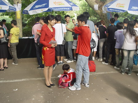 新生接待处的你不得不为眼前的一幕幕而感动。在这里,你可以看到我们精心布置的迎新场地,可以看到我们的学院领导、教授、专家、博士在咨询处耐心得回答家长新生们的疑问,可以看到我们分团委的老师们指导工作、维持秩序,可以看到我们的志愿者热情的服务,可以看到我们院礼仪们灿烂的微笑,可以看到家长自我们布置的休息区休息,可以看到我们张贴的文明标语,文明小提示……每一幕体现了我们文明教育的主题。