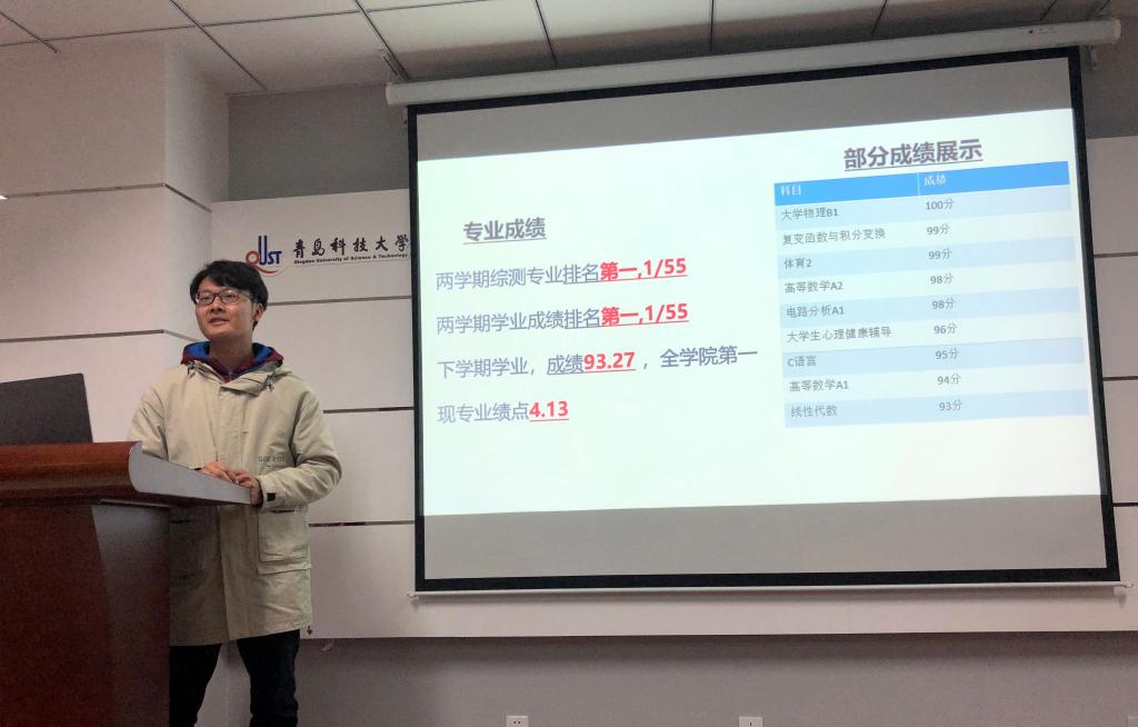 随后电信192班蒋富强作为优秀代表上台发言,以大学和高中的区别为切入点,站在学长的角度,从课内外两方面进行总结,为同学们提供了行之有效的建议。