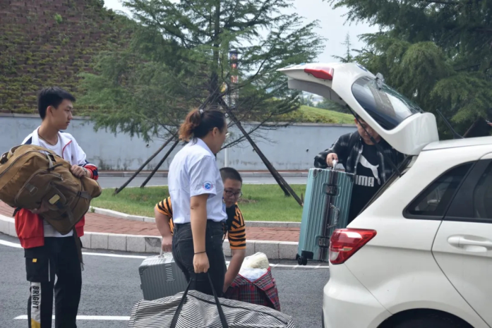 欢迎你”、“你的行李被我承包了”、“欢迎乘坐你的自化专属副驾”的爱心行李专车由学院领导、辅导员老师驾驶为新生派送。老师们不辞辛苦,躬身力行,只为新的自化er们能避开炙热的骄阳,躲过早秋忽来的大雨,一身轻简到达宿舍,快速入住学生公寓。