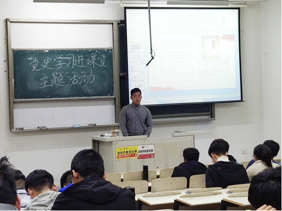 开展了“党史教育进课堂”主题活动的第一课,兼职辅导员井震从“党群关系”的具体含义、抗日战争时期毛泽东对党群关系的理解、如何密切联系党与群众的联系以及思考党群关系的现实意义等四个方面为同学们作出深刻诠释。