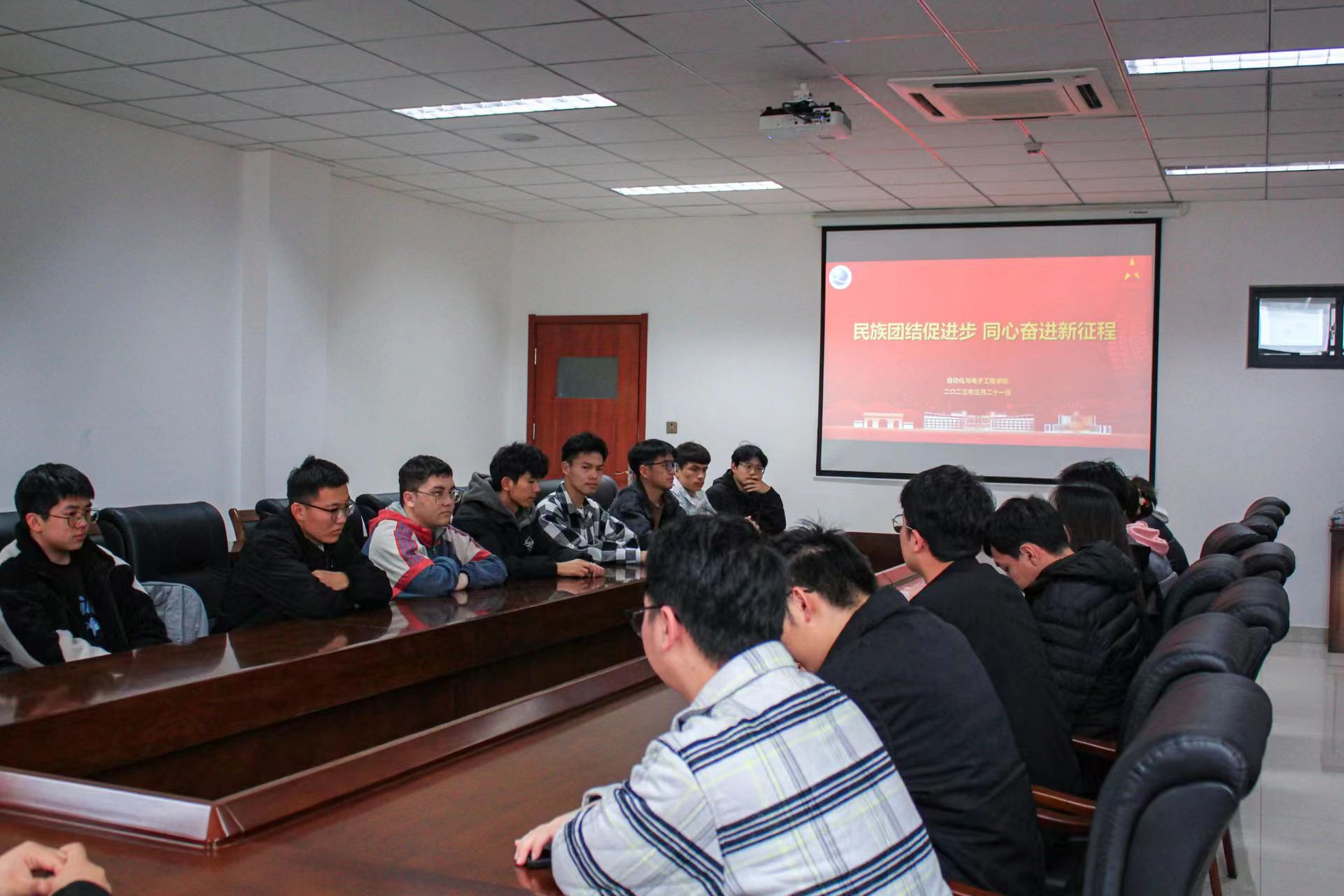 在学院楼408会议室召开“民族团结促进步,同心奋进新征程”少数民族学生座谈会。学院少数民族及资助工作负责人、辅导员张郁浩和各年级少数民族学生代表参加此次座谈。