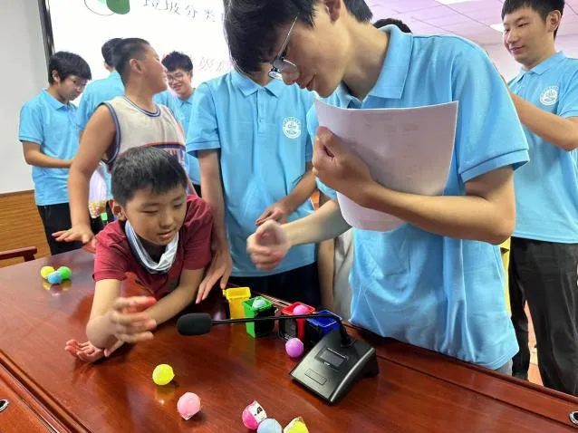 在知识讲解的基础上,志愿者们还设计了互动小游戏帮助孩子们投身实践,孩子们热情高涨,积极参与游戏。小朋友们在现场志愿者以及同伴的帮助下,将垃圾做到了正确分类。游戏取得了良好的反馈,更加表现了小朋友们已经初步掌握了生活垃圾的分类方法。