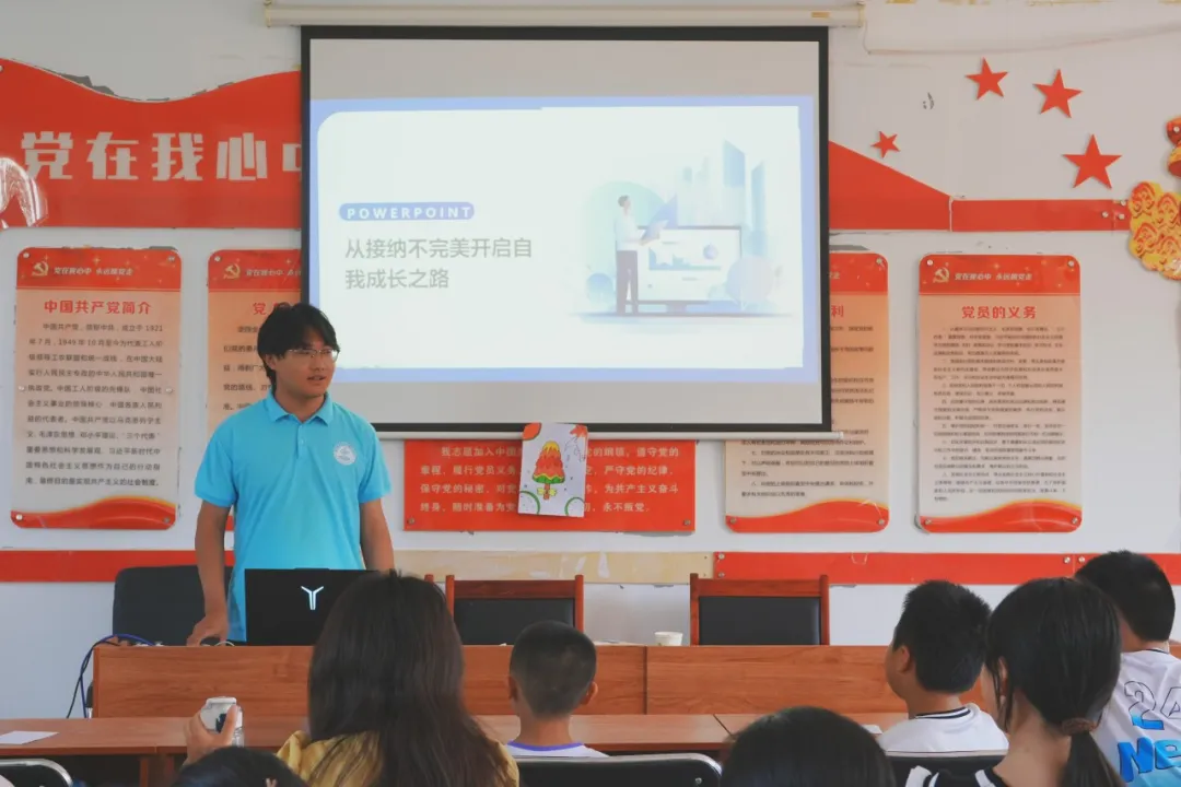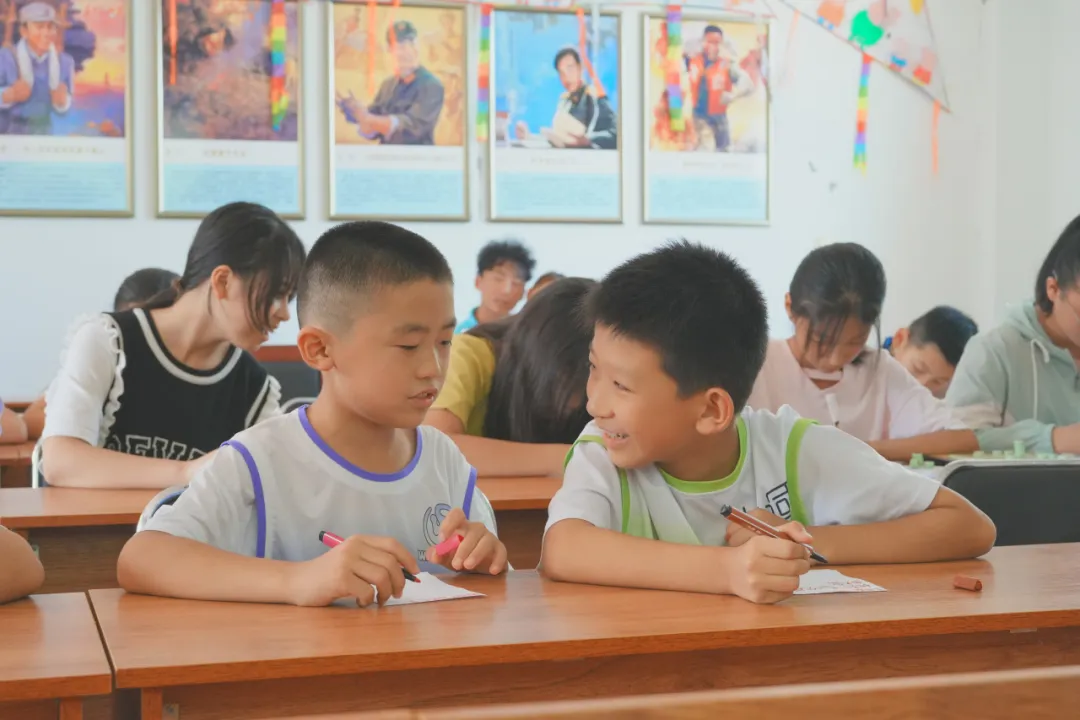 教育的温度,从“心”开始。志愿者们化身心灵导师,为孩子们开启了一场心灵之旅。课堂上,他们运用趣味横生的互动游戏,引导孩子们勇敢表达自我,让孩子们在分发的纸条上写出自己的优缺点,引导他们正视自身,接纳自己的不完美,在这片充满爱与关怀的港湾里,孩子们的心灵得到了温柔的抚慰与滋养。