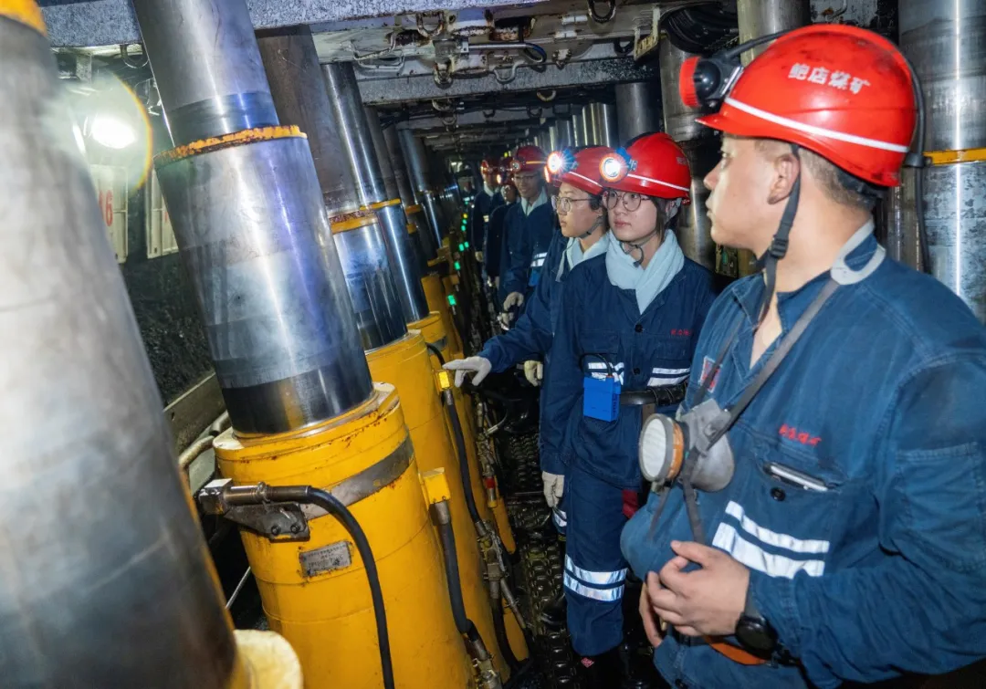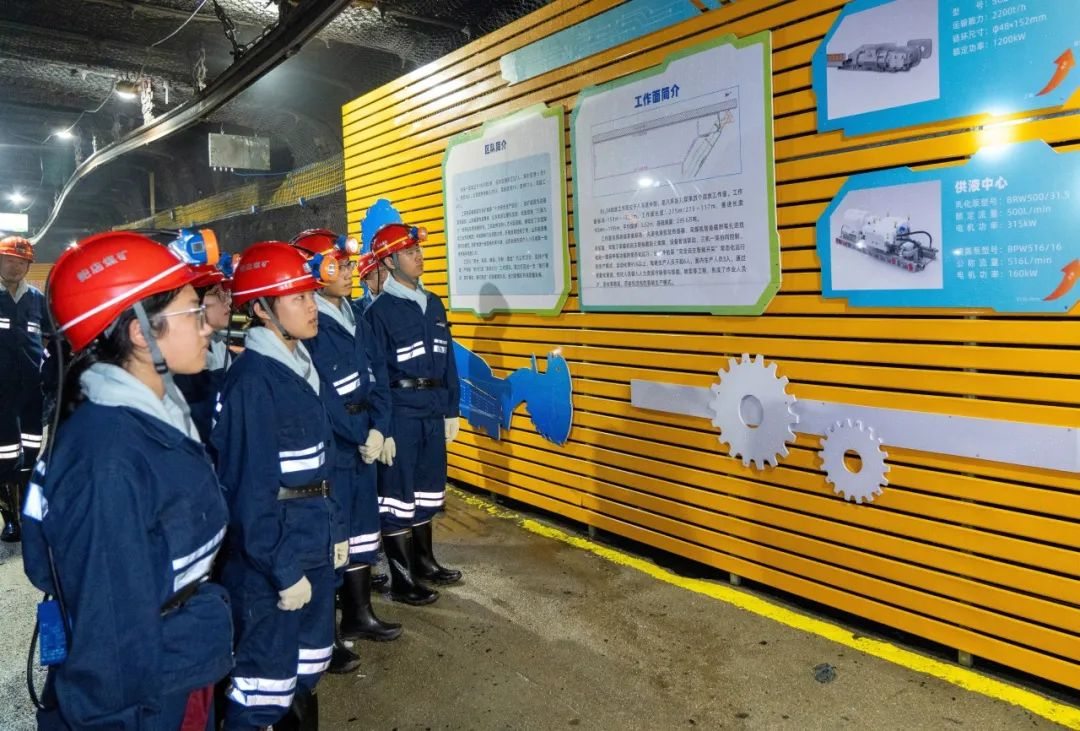 王凯科员向队员们介绍了液体泵站、液压支架、采煤胶带运输系统、通风系统等机电设备的各项功能以及设备的工作原理和作业流程。据悉,目前的井下采煤工作采用无人值守、有人巡视的工作模式,多角度、智能化监控屏幕实时监督作业面生产情况,实现了煤矿生产安全、效率双提升。在掘进工作面,实践队员们近距离感受到了煤炭开采的艰辛与不易。
