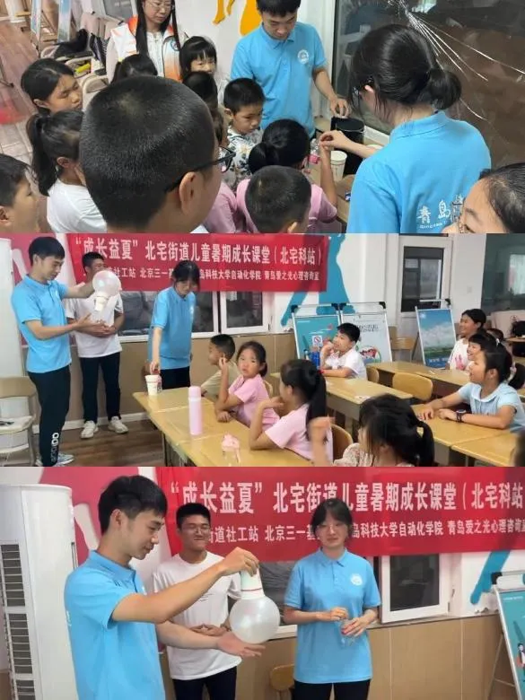 年轻充满朝气,青春孕育希望。日前,为积极响应国家“三下乡”号召,青岛科技大学“筑梦”志愿服务团队于7月16日满怀激情地踏上了前往青岛市崂山区北宅街道支教的旅程。在校团委的指导和北宅街道社工们的帮助下,一系列妙趣横生的小实验以及开拓思维的创客活动顺利开展,在孩子们灿烂的笑容中,志愿者们重拾生命的意义,以实际行动助力乡村振兴,展现了当代青年的责任感和使命感。