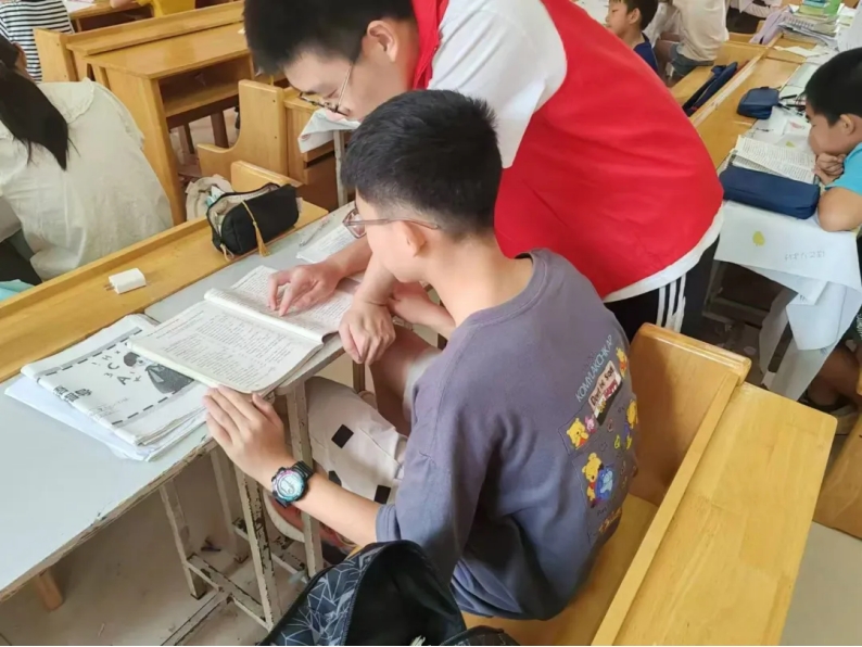 此次支教活动通过“交接仪式”正式启动,第一、二期志愿者携手同上一堂课,确保活动的连续性和有效性。为了满足孩子们的学习需求,志愿者们上午对不同年级的孩子们进行针对性的学科辅导。过程中志愿者们发现大部分同学英语薄弱,于是拿出部分时间领读英语单词以及讲解语法知识,为孩子们夯实基础。