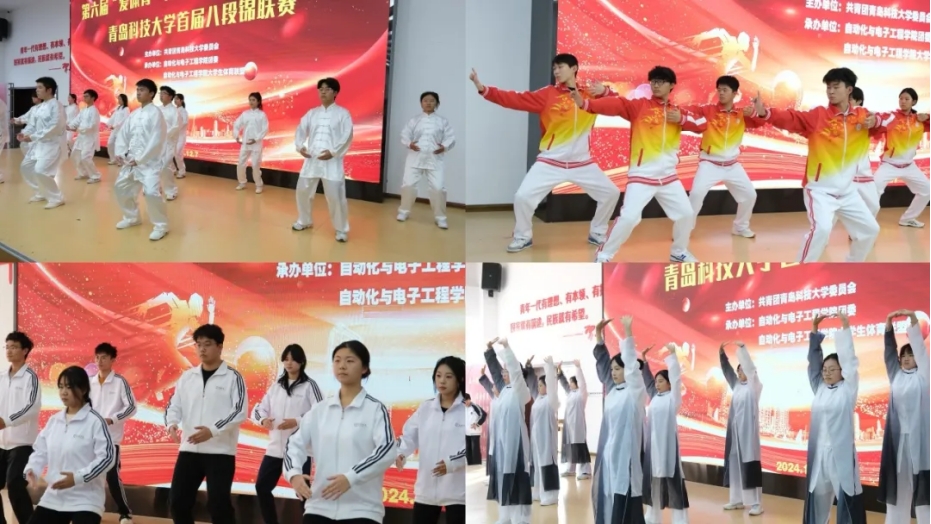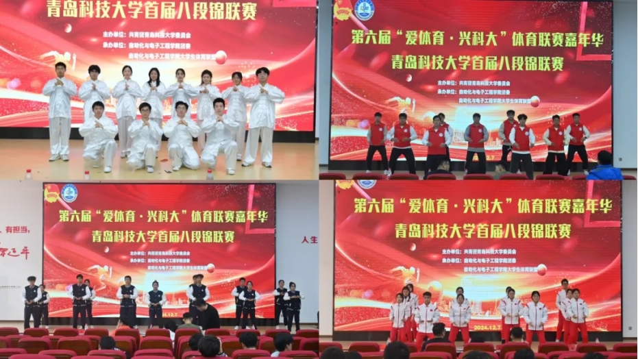 承办的青岛科技大学首届八段锦联赛于崂山校区北区团学报告厅顺利闭幕。崂山校区各学院踊跃参与。