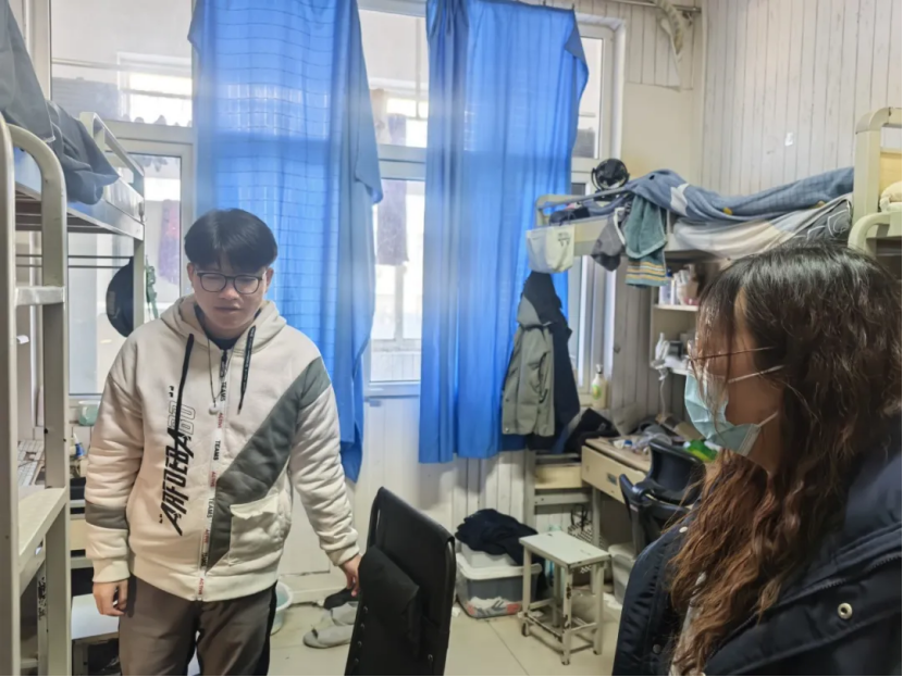 党委副书记兼副院长刘名森和各年级辅导员深入走访学生宿舍,学生党员陪同走访。