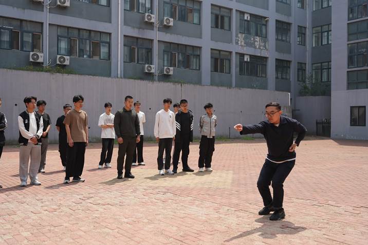武术教学环节将活动推向高潮。李卓林通过分解演示武当三式、太极云手等经典动作,阐释“以柔克刚、内外兼修”的武术哲学。从马步桩功的沉稳到弓步冲拳的劲道,同学们在“起势-运劲-收势”的循环中领悟发力精髓。李卓林强调了武术对提升身体素质、锤炼精神品格及传承民族精神的意义。