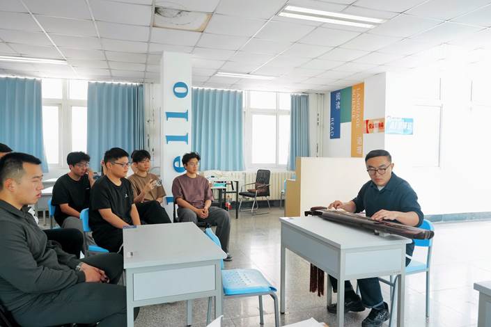 在北七学生公寓“AI家驿站”学生社区举办“非遗文化进社区”活动。学院辅导员李卓林担任主讲,通过古琴与武当武术教学,带领学生沉浸式体验传统文化魅力。