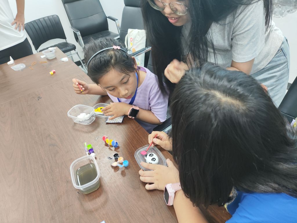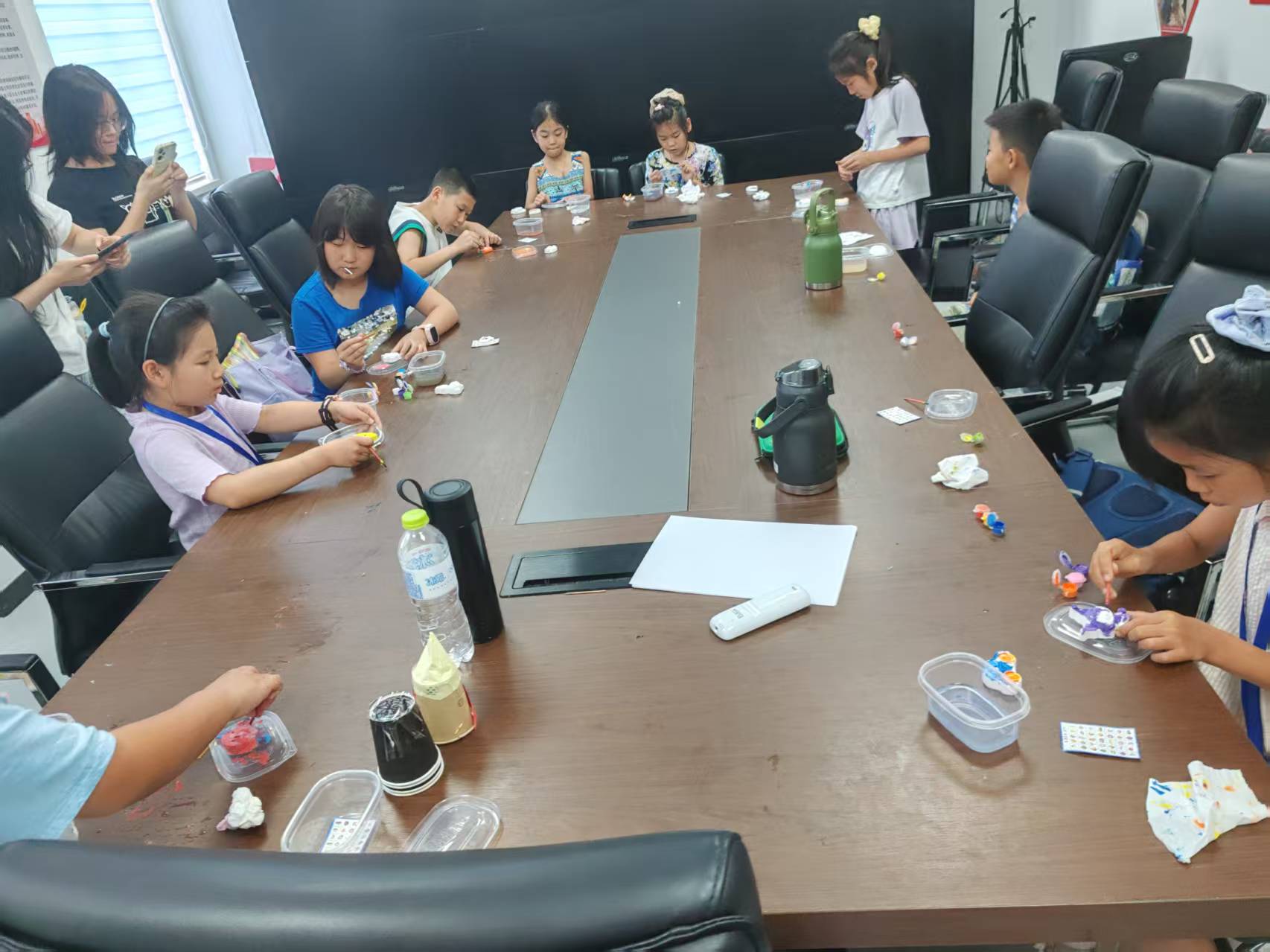 “AI同心环”助学实践团赴青岛市崂山区“听海”社区开展“涂绘石膏娃娃,绽放创意之花”暑期美育实践活动。